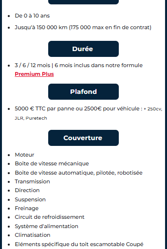 3000 € TTC par panne ou 1500 € pour véhicule : + 10 ans + de 200 000 km + 250cv, JLR, Puretech